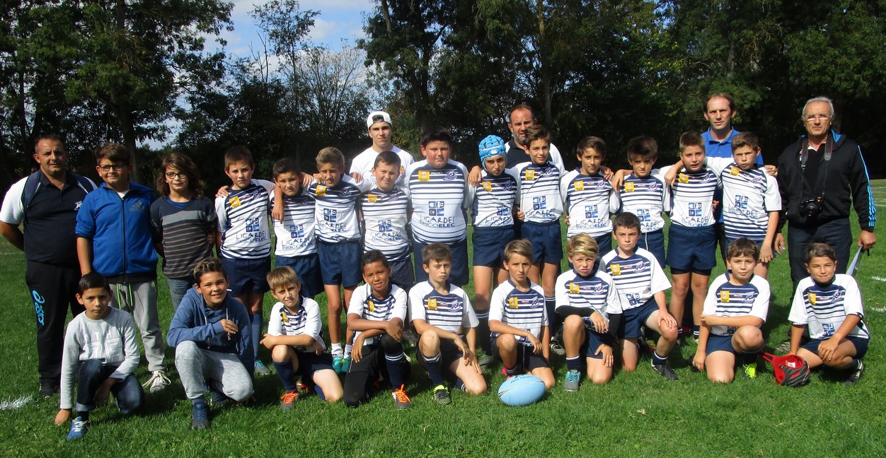 Merci à 3 joueurs de l’équipe première qui ont participé au tournoi et ont arbitré quelques rencontres. Maxime Pavan, Luc Espinasse, Lilian Parat sont en effet officiellement devenus les parrains de Minimes et des Benjamins. Paradoxalement ce sont les 3 plus jeunes de l’équipe première… C’est peut être trop loin pour les autres le temps de l’école de rugby….
