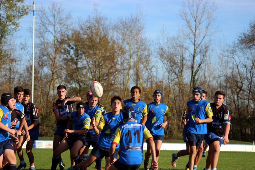 La seconde mi-temps reprenait sur le même tempo. Nos jeunes repartaient à l’abordage de la ligne adverse. Des maladresses, un manque de soutien, trop de placages manqués et l’adversaire confortait son avantage sans jamais véritablement prendre le jeu à son compte. Au rang des satisfactions on encouragera, une première ligne composée de premières années qui marque petit à petit son territoire, une seconde ligne appliquée, des trois-quarts volontaires, sans oublier une troisième ligne vraiment tout terrain.