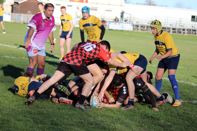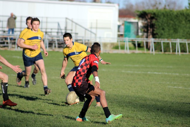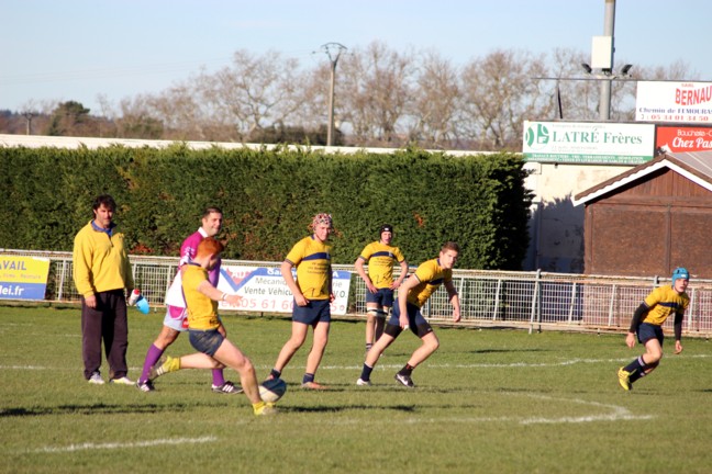 « Lors des dix premières minutes, nous encaissons 2 essais dont un  transformé (0-12). On s’organise en défense… on remet la main sur le ballon. Giovani Bini va derrière la ligne, Luc transforme et une pénalité réussie des 45 mètres par Giovani nous permet de revenir à 10-12. Nous dominerons dès lors largement les Ariégeois. Avant les citrons, nous avons trois occases dont nous ne profitons pas avec notamment un essai apparemment valable mais que l’arbitre nous refusera ayant vu un en avant. Ce sera là le tournant du match car si nous avions viré à 17-12, l’issue du match aurait été différente. A la reprise sur un coup de pied haut de Saverdun notre arrière voit le ballon rebondir sur sa poitrine une aubaine pour son vis-à-vis qui récupère le cuir pour aller derrière la ligne.  Saverdun prendra le large avec un nouvel essai transformé 10-26. Nous dominerons encore et encore jusqu’au coup de sifflet final mais malheureusement sans pouvoir concrétiser. Dommage… ».