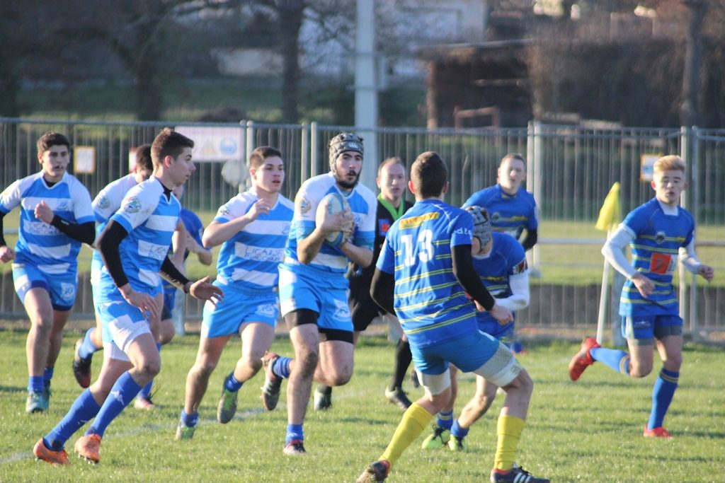 Bon début de match de nos jeunes, alternant jeu pénétrant et jeu au large, ils vont rapidement mettre nos adversaires à la faute, pénalité manquée par julien Bastide.