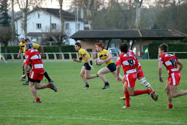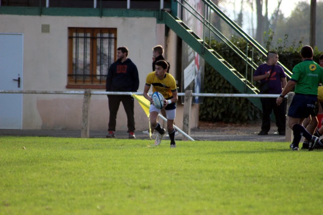 « Nous faisons une bonne entame. On marque un essai par Lauray transformé par Luc Bertolissi. On aurait pu en marquer un second ce qui nous aurait permis de faire le break mais c’est au contraire Lombez qui égalise avant la mi-temps (7-7). En seconde mi-temps ayant fait tourner l’effectif nous reprenons le match en mains. Giovanni Bini va par deux fois derrière la ligne, le second essai est transformé par Luc. Par rapport a à notre domination, nous aurions pu marquer à nouveau mais comme on le sait ce n’est jamais facile face à une formation de Lombez accrocheuse et qui joue la plupart du temps à la limite du hors jeu. Pour garder le contact avec le groupe de tête, Il faut maintenant assurer lors des deux prochains matches, le prochain dans 15 jours face à Saverdun, le second le 5 décembre face à l’Avenir Valencien »